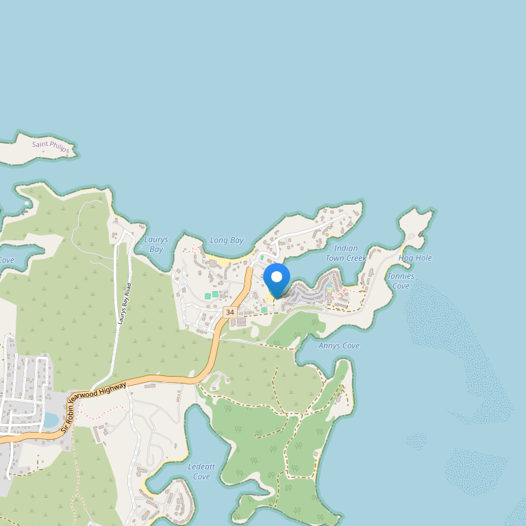Отель расположен на красивом уединенном пляже, на северо-восточном побережье острова Антигуа, в заливе Long Bay.