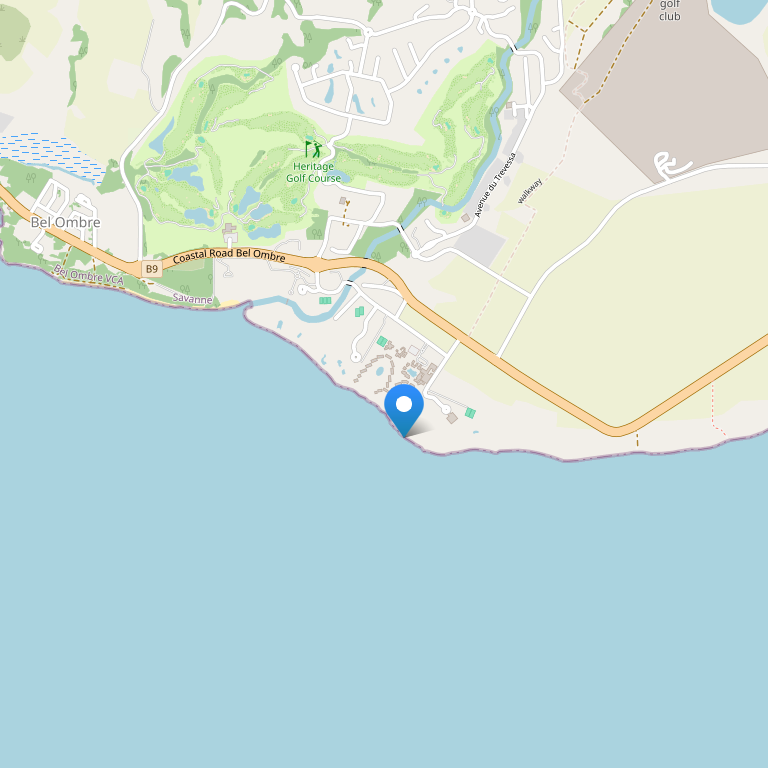 Расположение: на южном побережье острова Маврикий, в деревеньке Бель Омбр (Bel Ombre), в 30 километрах от международного аэропорта Плэзанс (Plaisance International Airport) и в 45 километрах от столицы острова Порт-Луи.