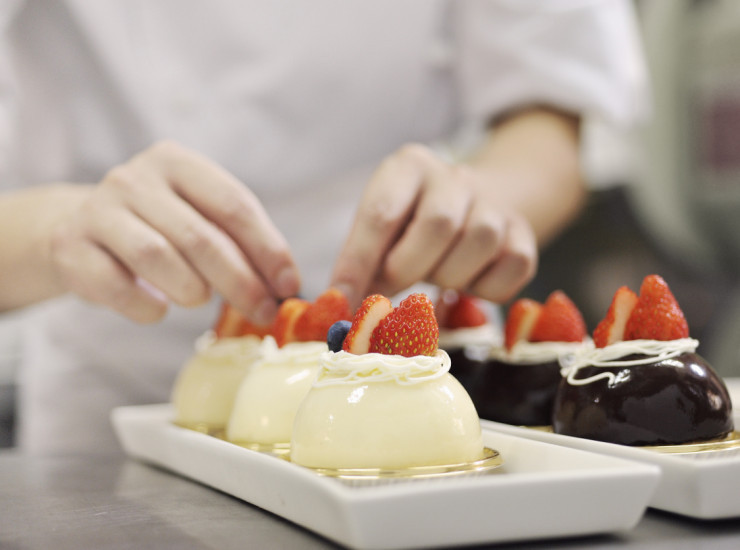 Меню легких закусок состоит из фруктовых салатов, десертов и выпечки