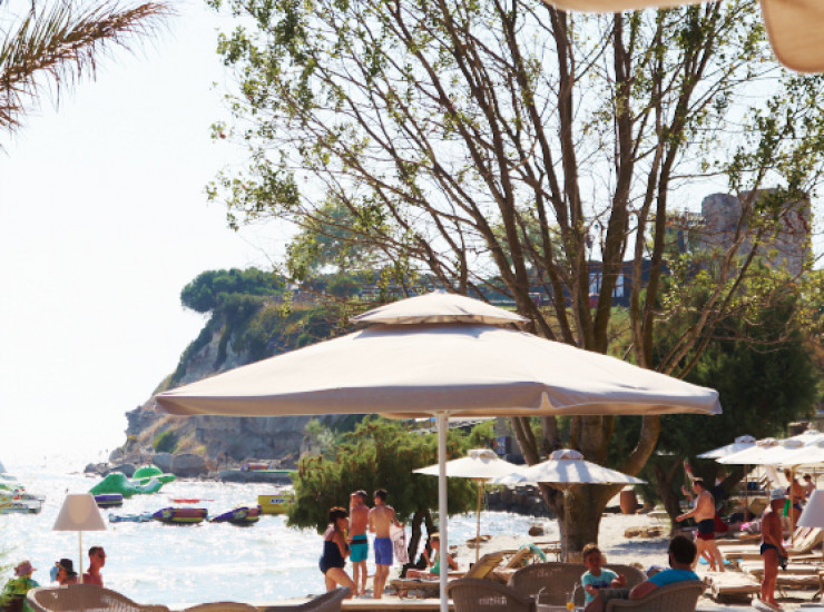Закуски, фрукты и напитки заказываются и доставляются прямо к шезлонгу гостя на пляже.