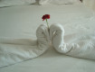 Приехали сразу к обеду, потом разместили, 3 корпус с видом на бассейны и море. Номер небольшой, но вполне для 3*. Уборка была, за доллар рассыпали лепестки роз и построили полотенца).