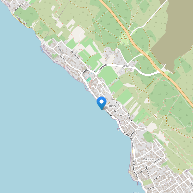 Хостел расположен в поселке Дикло, в 200 метрах от пляжа, в 5 км от центра города Задар, в 16 км от аэропорта Задара.