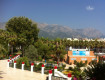 Большая и ухоженная территория,очень много зелени.Два больших бассейна(глубина 140 см)для взрослых и два для малышей.Есть еще и бассейн с горками,.настольный теннис, мини-гольф, тренажёрный зал, детская площадка,спа салон.И птицы по территории гуляли)