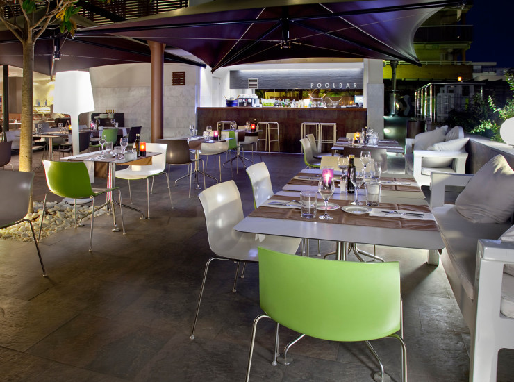 Guests can also enjoy our open air restaurant inaugurated in 2010, the Poolbar & Restaurant on the poolside terrace. It has its own adjoining lounge and is open to the public. High quality Mediterranean cuisine, an excellent selection of cocktails and mixed drinks and the best chill out music have made the Poolbar & Restaurant a new meeting point for the nights of Salou.