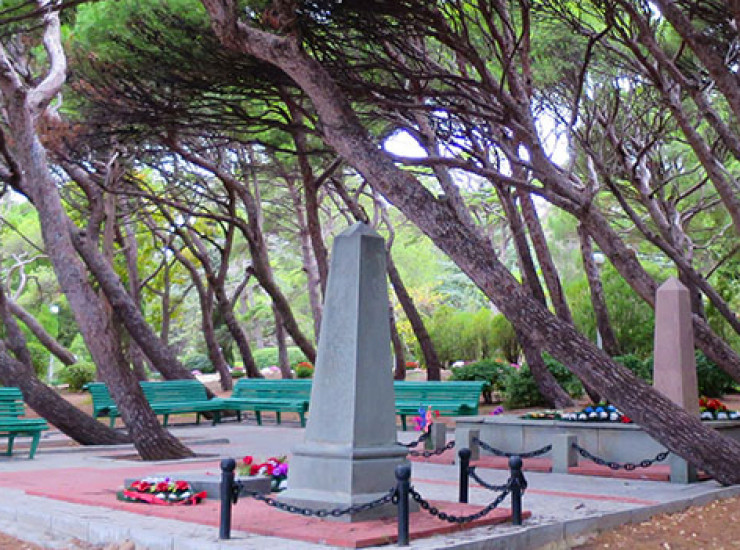 8. В тени алеппских сосен величественно стоят два обелиска.
