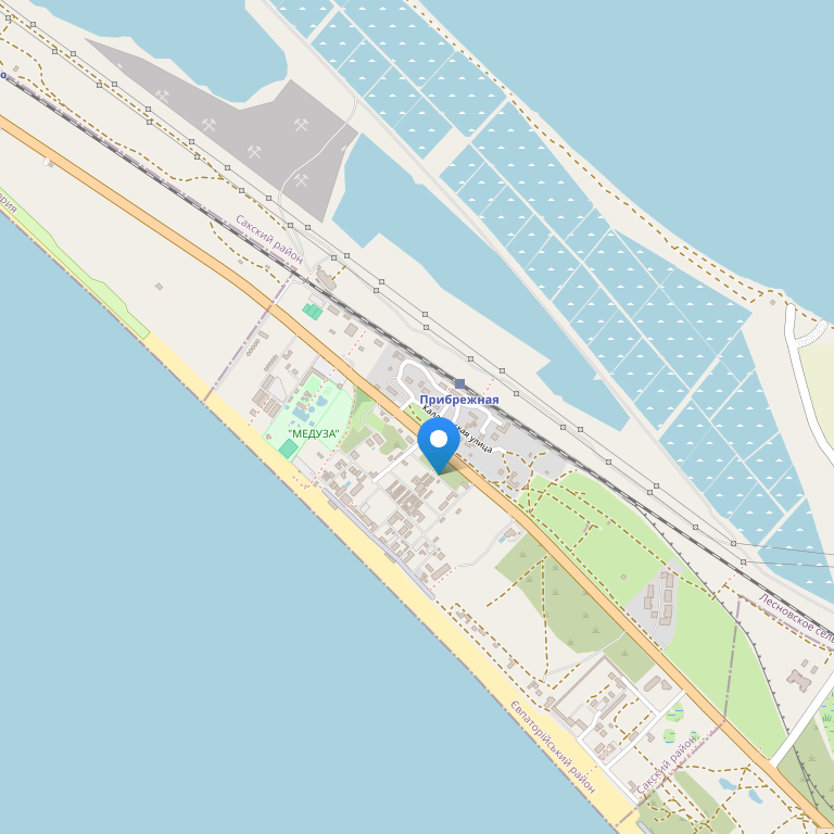 Гостиный дом "Сакский Дворик" расположен на узкой полоске земли между соленным озером Сасык-Сиваш и лазурным берегом Черного моря в курортном поселке Прибрежное, который находится между двумя известными здравницами г.Евпатория (12 км) и г.Саки (8 км).В 10 минутах ходьбы нахдится огромный аквапарк "Банановая республика".