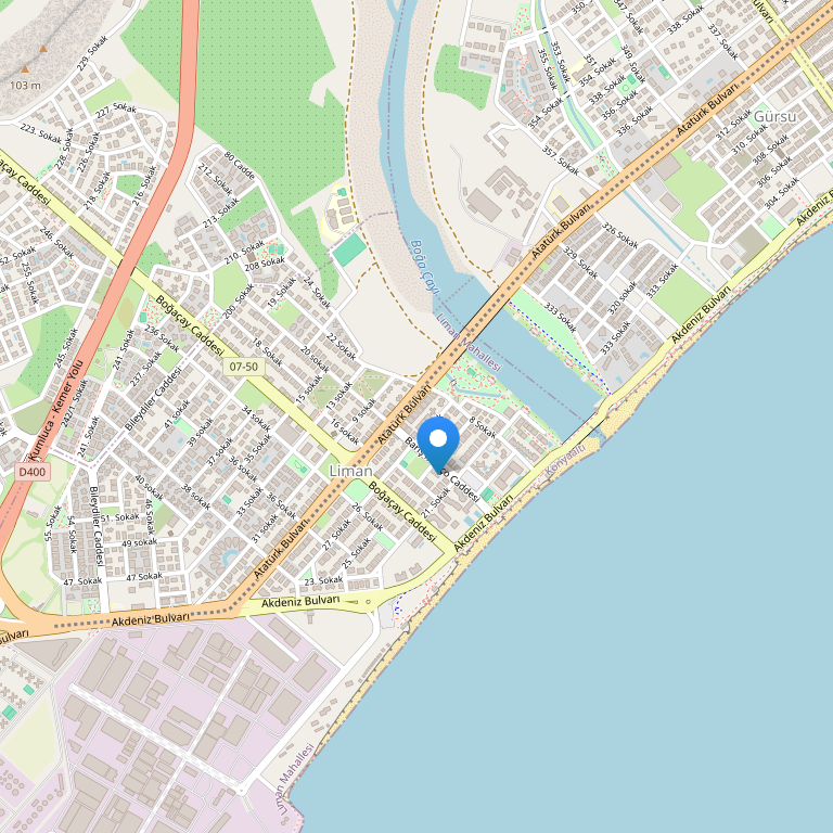 Отель находится в 5 минутах ходьбы от прекрасного пляжа Коньяалты, где Вы сможете насладиться солнцем, морем и песком. Также Вы сможете посетить национальный парк Аклиман и центр города Анталья в 9 км от отеля.