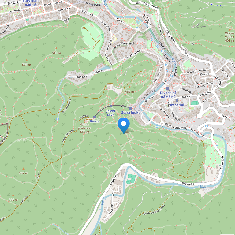 Отель расположен непосредственно в курортном центре, напротив театра у реки Тепла, в городе Карловы Вары.