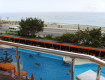 ОТЕЛЬ. Практически без территории, есть один бассейн, метров 25 примерно, глубокий, вода прохладная, вечером закрывается и включают подсветку с фантанами, маленький детский и детская площадка у бассейна. Все остальное на территории соседней 4-ки: бассейн, 3 горки, детский клуб и дискотека. Хозяин отеля явно съэкономил...