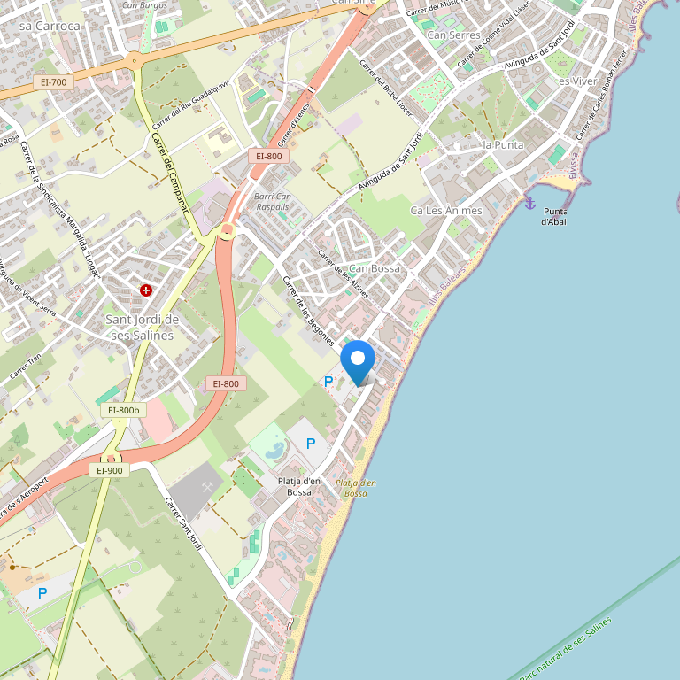 Расположение: на первой линии пляжа знаменитого курортного местечка Playa d ’’ en Bossa , в 4 км . от центра г. Ибиса.