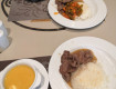 Пластиковые стаканы, одна салфетка на человека на столе, еду взять,постоянно в очереди стоишь огромной, повар отвернётся, что-то там типо накладывает долго, поворачивается к тебе с 2-3 картошинками (долечки) и так во всем, нужно просить и...