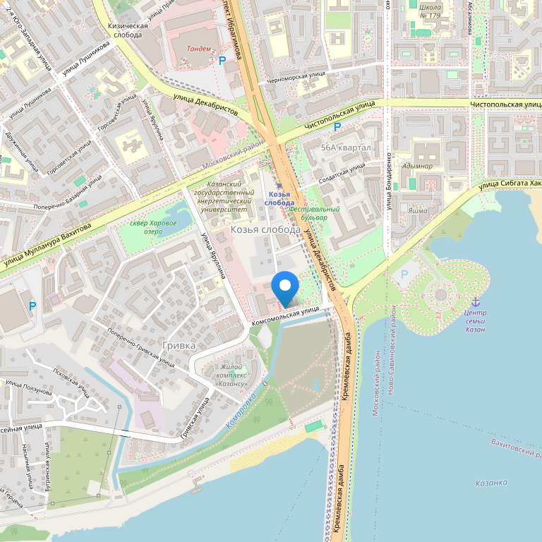 Расположение: в живописной парковой зоне, в 10 минутах от делового и культурного центра Казани. До Ж/д фокзала 3 км (10 мин), до аэропорта 35 км (40-50мин), до центра города 10 мин., Из окон открывается великолепный вид на р. Казанку и Казанский Кремль. В 5 минутах ходьбы парк аттракционов Шурале. Аквапарк 20 минут. В пределах пешеходной прогулки Казанский Кремль целое собрание памятников архитектуры разных эпох: белокаменные постройки времен Ивана Грозного, Президентский Дворец (действующий), падающая башня Сююмбике, Благовещенский Собор, Мечеть Кул-Шариф (самая большая мечеть в Европе). Год постройки 1997.