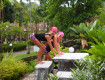 Понравились номера в длинном одноэтажном корпусе, поделенном на отдельные домики - получается, как будто живешь в своем загородном домике, со своей верандой! Выходишь из номера - и оказываешься в пальмовой роще, над головой растут кокосы, кругом - тропические цветы! Территория отеля - очень большая, есть где погулять! Но времени у нас на то, чтобы обойти его...