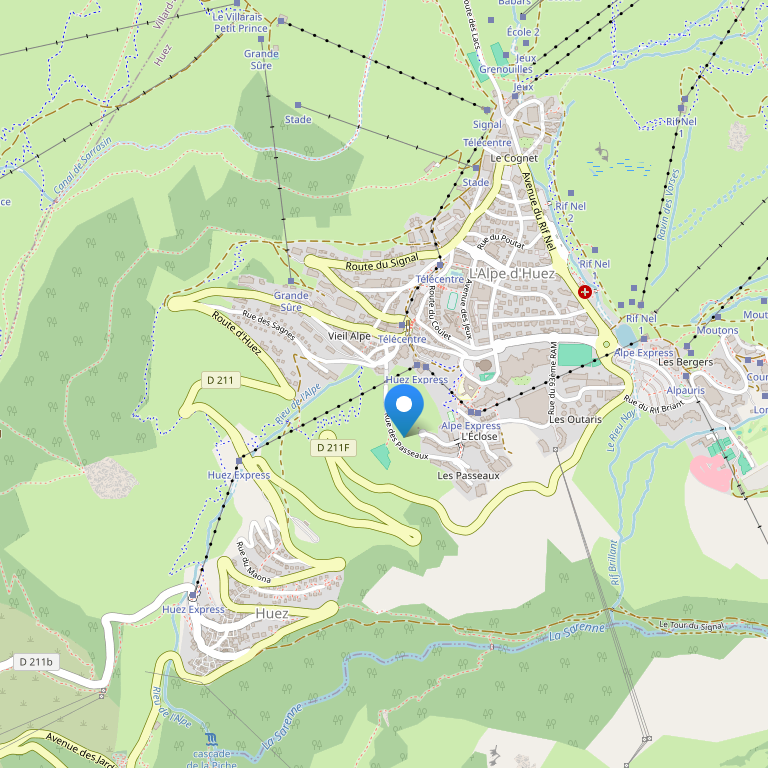 Отель расположен в районе Bergers на горнолыжном курорте Alpe D'Huez. Международный аэропорт находится в 110 км от отеля.