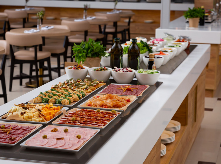 Ресторан полностью обновлен в 2022 году. Здесь гостей ждет богатый выбор горячих и холодных блюд русской и европейской кухни, разнообразные закуски, молочные продукты, горячие напитки, фрукты, а также свежая выпечка, домашние десерты, шоколадный фонтан и широкий ассортимент алкогольных напитков.