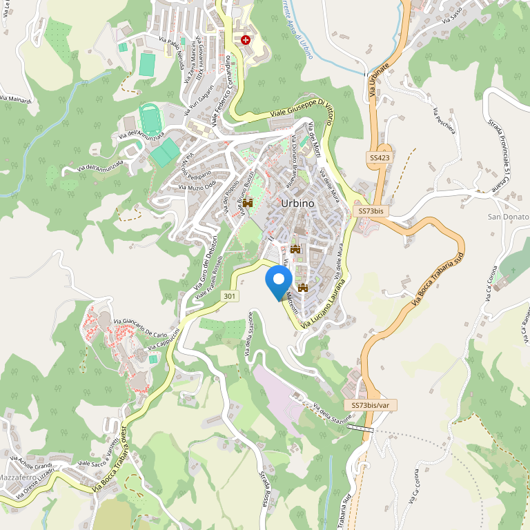 A peaceful oasis in the town’s historical centre, it stands within the town walls, just a short walk away from the “Palazzo Ducale”. The hotel boasts magnificent views of the surrounding countryside.