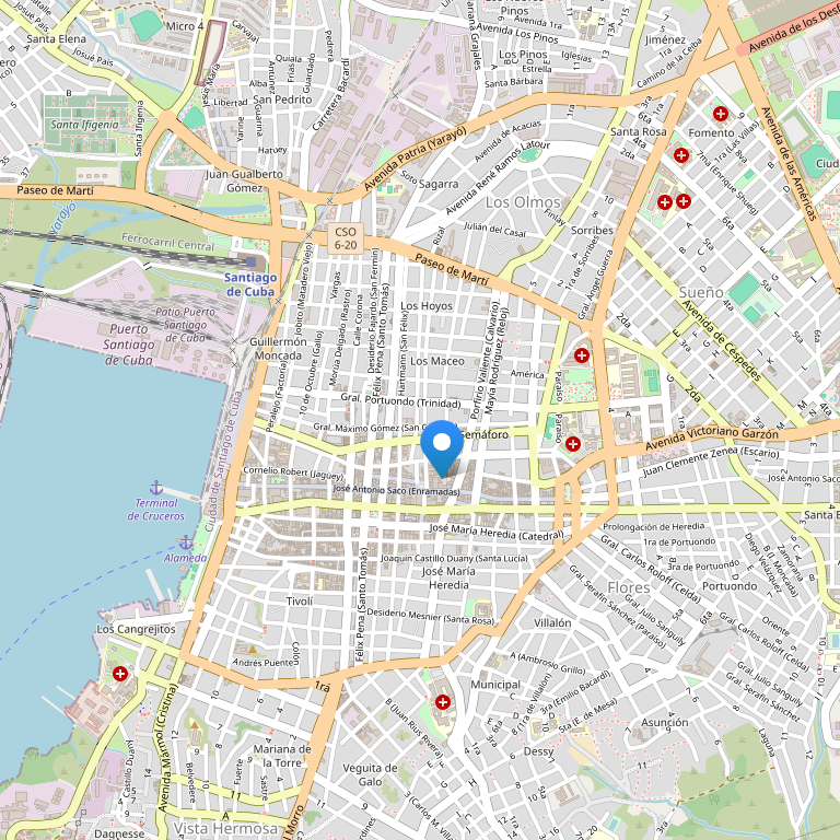 Отель Gran Caribe Casagranda находится в самом сердце исторического центра Сантьяго-де-Куба, на Оружейной площади, сейчас парк Сеспедеса, где происходит множество важнейших городских мероприятий, в 10км от международного аэропорта, недалеко от главных достопримечательностей города Дом-музей Диего Веласкеса, Городской собор, Дом Тровы и Музей Бакарди