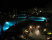 Проходишь лобби и спускаешся в большой главный ресторан. Вид на голубой бассейн и море.