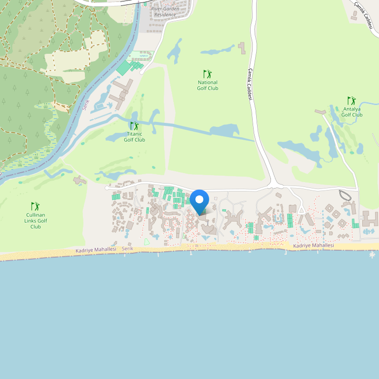 Расположен в 35 км. от Международного аэропорта г. Анталия, в 45 км. от центра Анталии, в 5 км. от посёлка Кадрие.