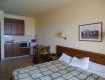 Номера все в виде апартаментов. Две комнаты,в одной две кровати, в другой кухня и гостиная, а так же балкон. Очень просторные. Мебель не новая, но всё чисто....