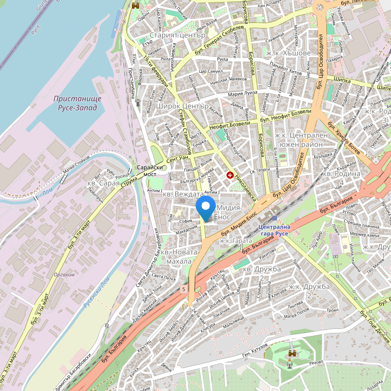Отель расположен в городе Русе, на старейшей рыночной улице и предлагает удобную транспортную развязку, что позволяет легко добираться к разнообразным туристическим достопримечательностям города, также неподалеку от кафе, баров и магазинов.