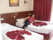 Отдыхали мы втроем,мама я и мамина подруга,в сентябре 2012 года.Отель просто супер(это не первый мой отдых за границей),персонал просто супер,с размещением проблем никаких,номер очень хороший уютный .Кормят на убой (даже супчики готовили),голодными точно не останитесь.Не верьте тем отзывам которые пишут что было всё плохо,в основном пишут...