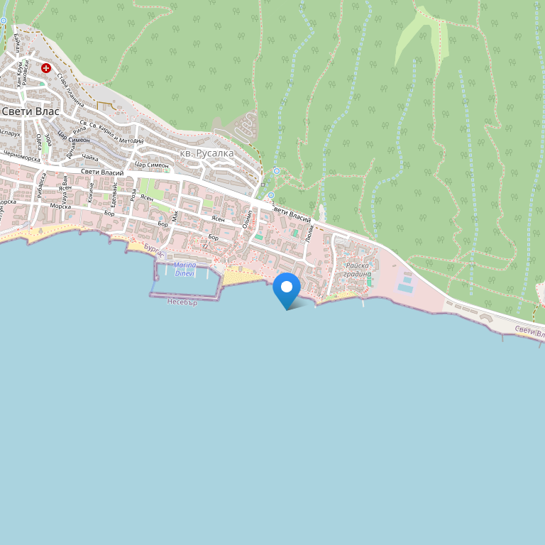 Гостиница "Южная ночь" расположена на юге курортной зоны «Святой Влас» Болгария, в 200 м от пляжа «Манастир» и в 100 м от пляжа «Райский сад», в спокойном и комфортном для купания месте.