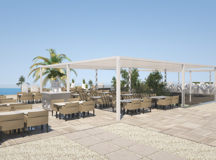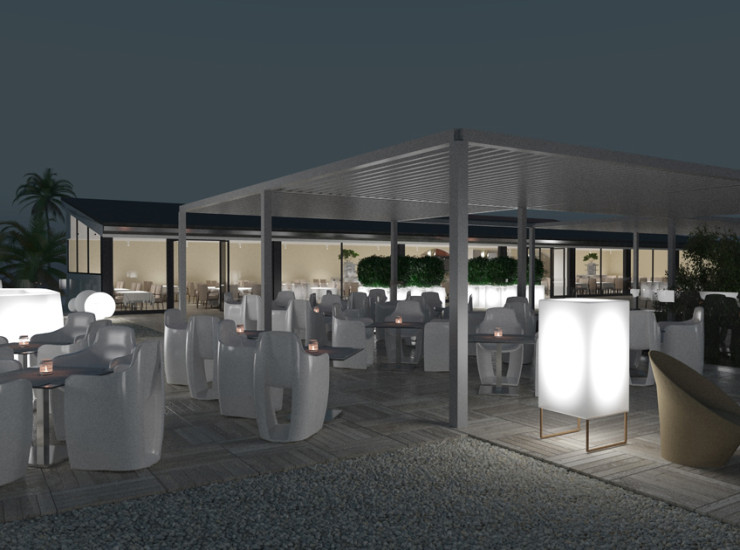 Открытая терраса, расположенная рядом с рестораном с обслуживанием за столиком с музыкой чил-аут. Исключительно для взрослых.