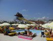 пляж вполне приличный. вначале небольшие камни (1,5-2 метра) а затем приятный песок и не очень глубоко. дети вполне могут плескаться на берегу не боясь...