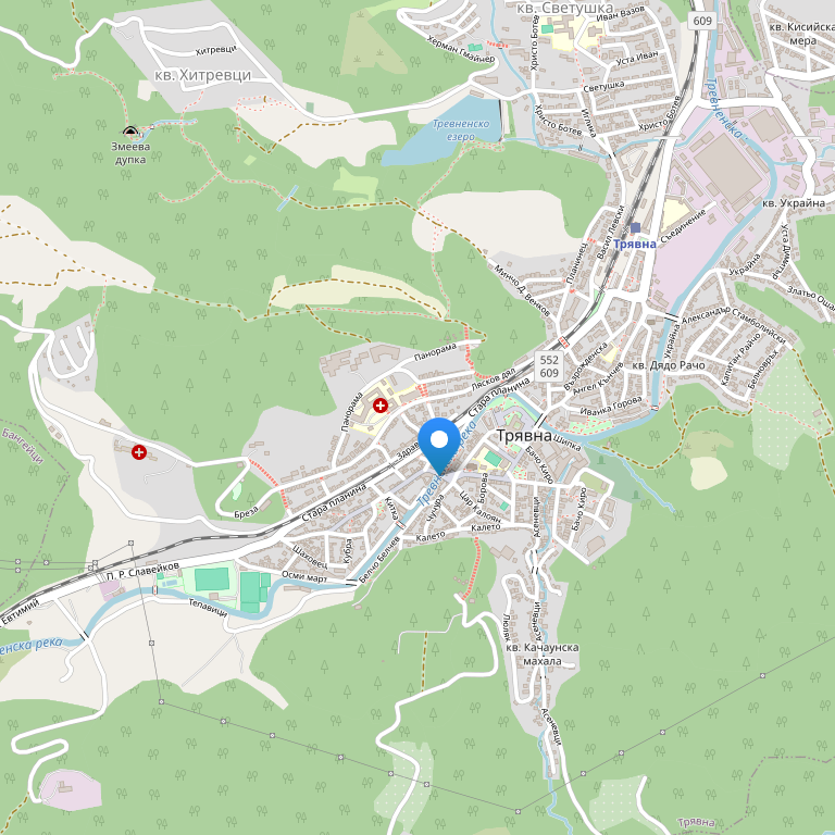 Отель расположен в небольшом городке Трявна, в самом его центре, рядом с Часовой башней отеля Zograf, также в пределах пешей доступности от ресторанов, баров и магазинов, в 500 метрах от главного автобусного вокзала, а вот чтобы добраться до Дряновского монастыря, необходимо проехать 20 км на транспорте.