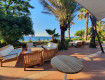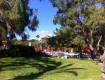 Начнем с территории? Территория большая, утопает в зелени: сосны, апельсины, цветочки. Пляж песочек, но заход в море камешки – не забудьте тапочки, если ноги чувствительные. Лежаков много и разных: хотите стандартного вида, хотите диванчики, стульчики.