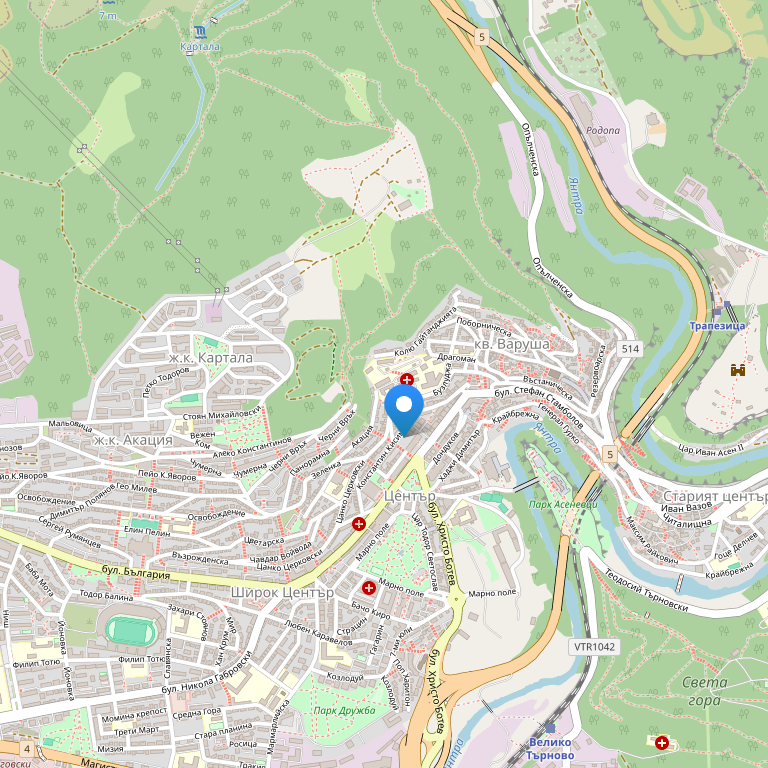 Petra Guesthouse расположен в городе Велико Тырново. Находится в центре города, рядом с главной торговой улицей. В непосредственной близости к отелю расположено множество достопримечательностей, таких как крепость Царевец, находящаяся всего в 1,5 км, а также архитектурные и исторические памятники Старого города. Центральное расположение отеля обеспечивает легкий доступ ко многим ресторанам, барам, кафе и магазинам. Они находятся в паре минут ходьбы от отеля.