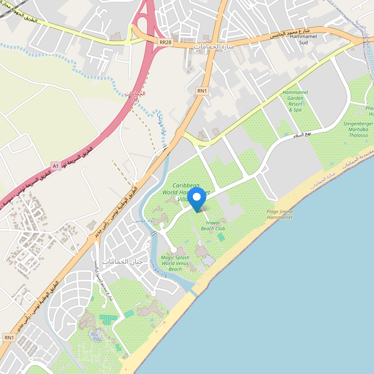 Отель расположен в 10 минутах езды от Хаммамета и в 60 минутах от международного аэропорта Tunis-Carthage International Airport.