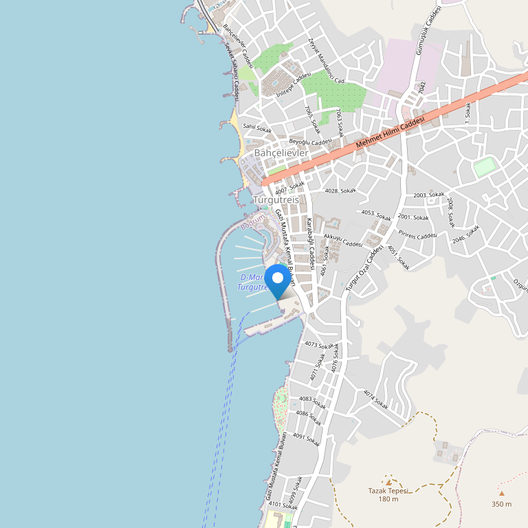 Отель расположен на пляже Тургут Реис, в 18 км от центра г. Бодрум, в 48 км от международного аэропорта Бодрум.