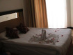 1. сам отель расположен очень неудобно в центре Кемера (хотя может кому-то нравится), номера выходят либо на дорогу (спать невозможно машины гудят до самого утра, рядом мечеть -так что ранний подъем вам обеспечен, т.к. где-то полпятого утра мула начинает читать молитву в микорофон на всю округу) другая часть номеров выходят на другие номера...