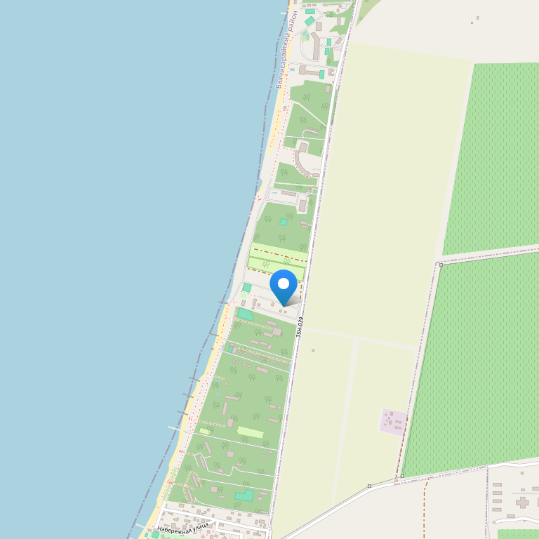 Песчаный пляж в 300 м от гостиницы.
