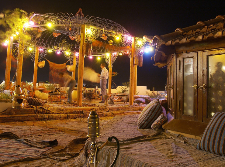 Уголок Востока с видом на остров Тиран. Расположен рядом с дискотекой и предлагает традиционные напитки и кальян с ароматизированным табаком (платно).