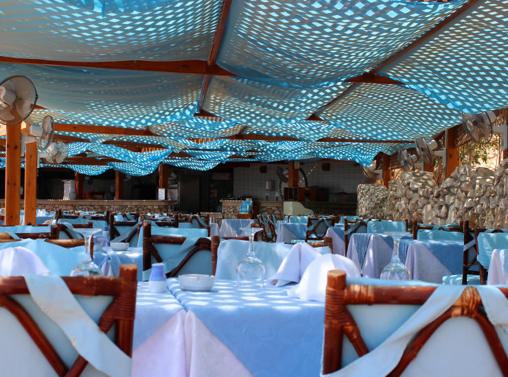 Уютный ряд беседок в окружении пальм и бугенвиллий предлагает около 200 мест и богатое а ля карт меню, в котором свой неповторимый след оставил итальянский шеф-повар.