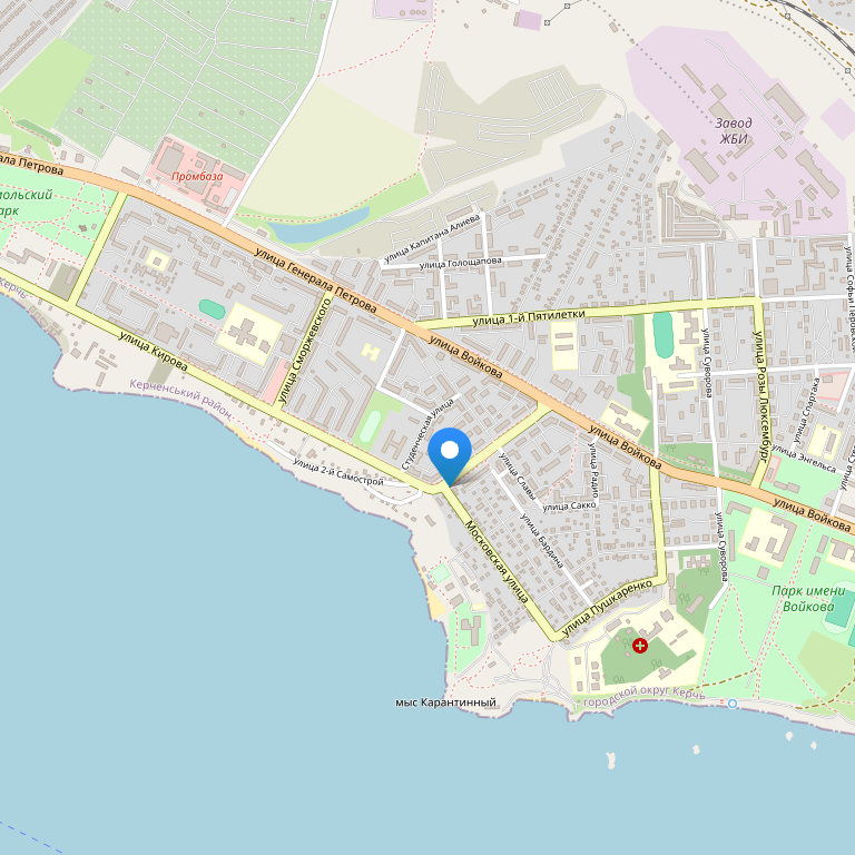 Отель расположен в городе Керчь, на берегу моря и рядом с великолепным пляжем, неподалеку от основных туристических достопримечательностей, баров, ресторанов и магазинов.