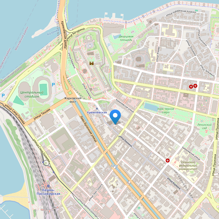 Отель расположен в историческом центре Казани, в 10 минутах ходьбы от Центрального стадиона, также недалеко находится Баскет-холл, где можно посмотреть встречи популярных баскетбольных команд, в шаговой доступности от железнодорожного вокзала. Если возникнет желание походить по магазинам, обзавестись сувенирами для друзей – рядом с отелем расположена пешеходная улица Баумана – Казанский Арбат, где находится бесконечное множество магазинов и магазинчиков, лавочек и киосков. Также рядом находятся крупные торгово-развлекательные центры. Можно не бросать свои привычки заниматься спортом, даже находясь в гостях: недалеко от отеля расположены фитнес-центр и аквапарк. Всего 7 минут пешей прогулки отделяют Вас от недавно реконструированного железнодорожного вокзала, что позволит Вам сократить деньги на транспорт и сохранит много времени. С вокзала поезд – экспресс за 30 минут доставит Вас в международный аэропорт Казани.