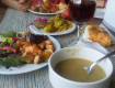 Питание разнообразное, алкоголь - вино белое и красное, пиво, джин, водка, раки. Жаль, бар работает с 10:00 до 22:00 )))