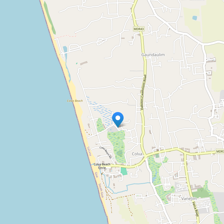 Отель находится в 22 км от аэропорта, в местечке Колва, в южной части штата, в центре Гоа.