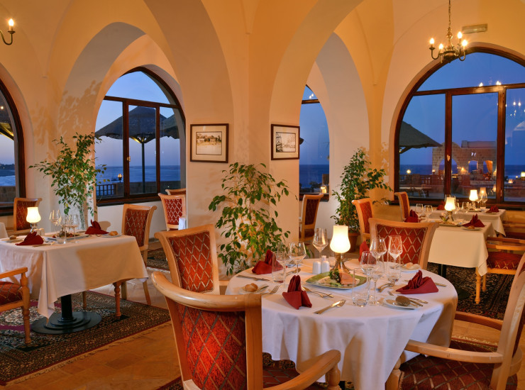 Fine-dining restaurant with Nubian-style décor indoors and an outdoor terrace, where you can dine under the stars. This is the perfect place for a romantic à la carte dinner overlooking our beautiful El Quadim Bay. Enjoy your meal in the evening breeze on the large terrace. The cuisine is both innovative and international; a set menu may also be selected. Reservations required.