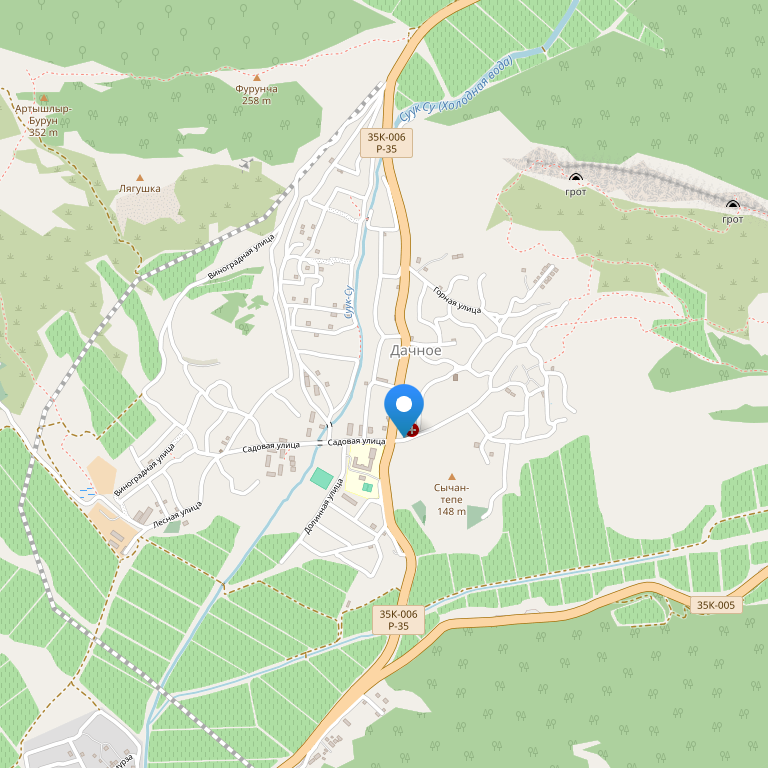 Райский уголок расположился на въезде в город Судак, Крым. Село Дачное (бывшее ТАРАКТАШ) просторно раскинулось между живописными вершинами Таракташ (Скальный гребень) и Бакаташ (Каменная лягушка). Именно окружение гор, изолируя Вас от шума, даст возможность насладиться тишиной и пением птиц. А удобное месторасположение позволит Вам сочетать изолированный отдых и культурно-развлекательным отдых в Судаке.