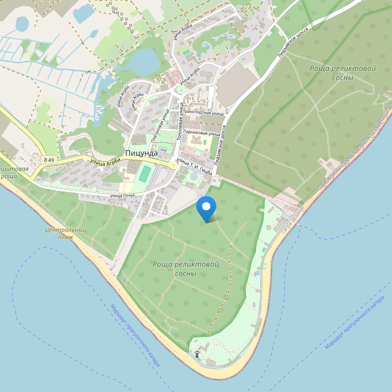 Отель расположен в живописном городе Пицунда, в тихом его районе, неподалеку от центра и примерно в 300 метрах от пляжа, в 59 км от ж/д вокзала и аэропорта г. Адлер, в 43 км от Российско-Абхазской границы.
