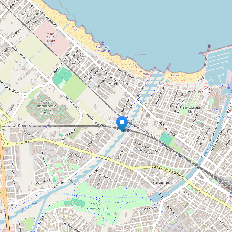 Отель Laika расположен на берегу песчаного пляжа, в 2 км от центра Римини, в 19 км от железнодорожного вокзала Римини.