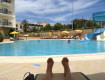 Приехали за границу в первый раз. Впечатление осталось очень хорошее. Разместили сразу, номер с видом на бассейн и море. Территория действительно маленькая, но нам хватило. Ребенок с удовольствие покатался на качелях и горках. Море безумно красивое и очень понравились утренние зарядки под музыку на пляже. Единственное не повезло с погодой так как...