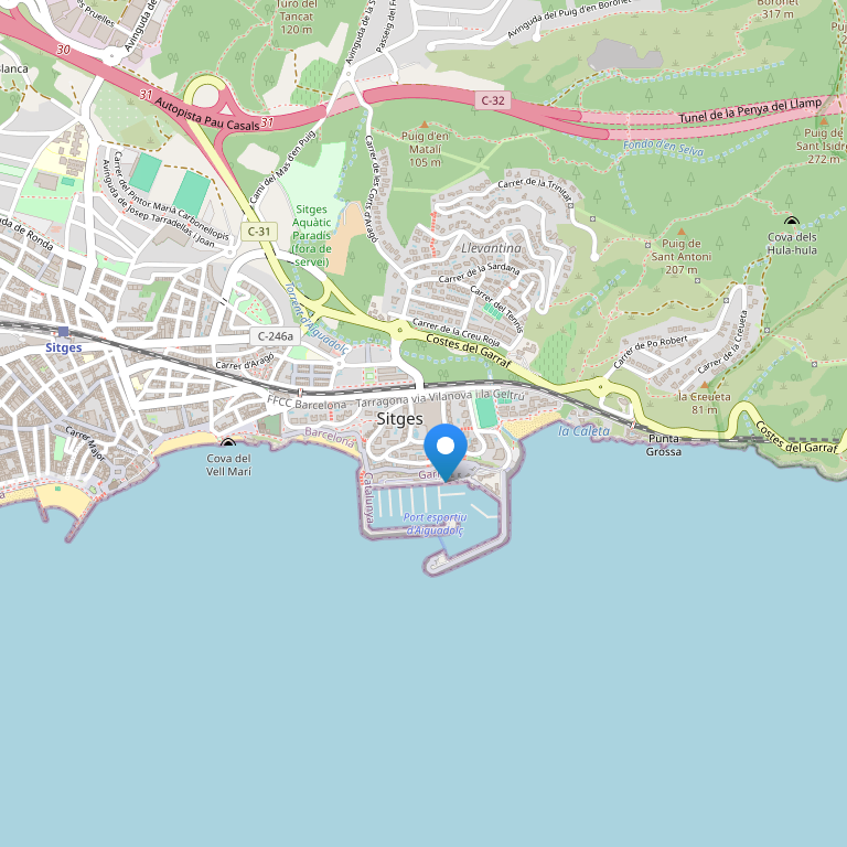 Курорт Port Sitges расположен в городском порту Эгуадольч. Барселона находится в 25 минутах езды на автомобиле и в 40 минутах езды на поезде от отеля. Аэропорт Эль Прат расположен в 15 минут езды.