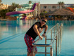 Заселили быстро, хорошо, с видом на море на 4м (самом верхнем) этаже. Вид на бассейн с горками (бассейна в отеле два).