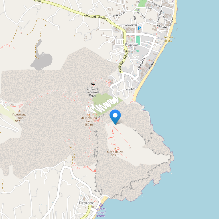Place: A modern hotel built in traditional style, the Poseidon Beach Hotel is located on the beachfront in the village of Kamari on the east coast of Santorini, next to the volcanic beaches with their lava-colored sand and the resort's shops, bars and restaurants. The crystal clear waters of Kamari beach are right in front of the hotel and Fira, the capital of Santorini, is 9 km away. Santorini airport is Just 4 km away with an approximate driving time of 5 minutes.